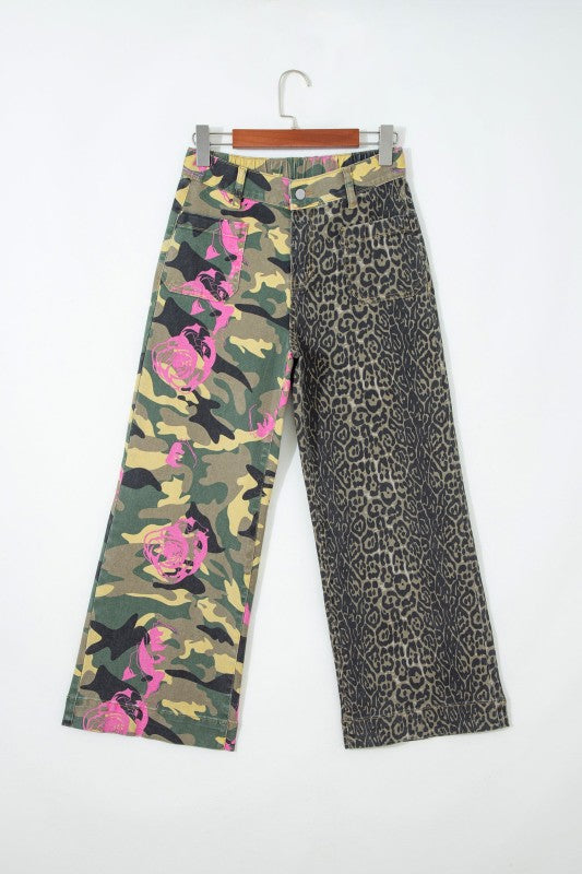 Raven Camo Leopard Patchwork Straight Leg Jeans